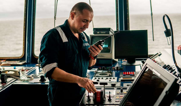 Marine communication radios enable ship-to-ship and ship-to-shore communication.